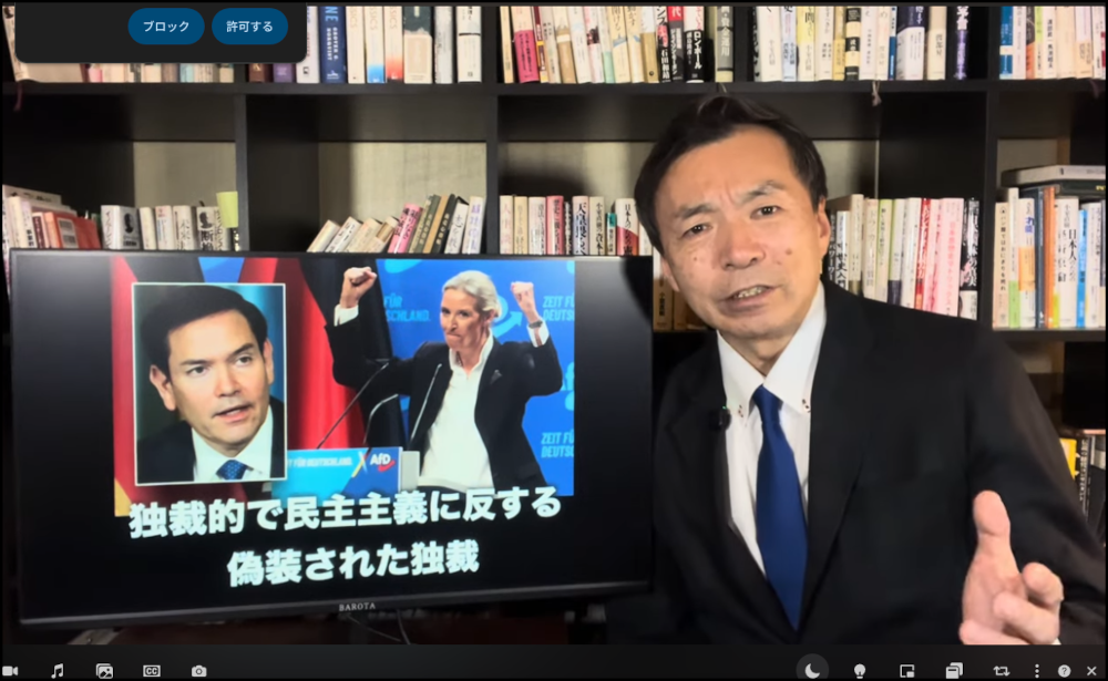 これらについて、連立を組むドイツキリスト教社会同盟(CSU)の有力者、マルクス・ソーダー氏(バイエルン州首相を勤めた)もメルツ首相を批判している。また、米国のトランプ大統領やルビオ国務長官は「反民主主義的措置で、ドイツは独裁国家になった」と非難している(https://www.youtube.com/watch?v=bRg86XKCaa0&t=1065s)。右派民衆政権のトランプ政権と英独仏のリベラル左派全体主義官僚独裁政権(欧州連合=EU)との距離は、深まるばかりだ。