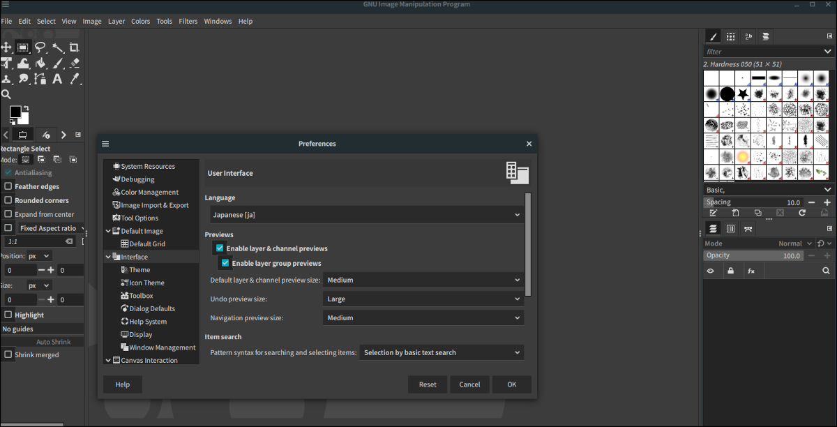 【追記】gimp 3.0.2のユーザー・インターフェイス言語を変更できない(Gimp Version:3.0.2 - Is no possible change the UI language)とするサイトが有りました(https://gitlab.gnome.org/Teams/GIMP/Design/gimp-ux/-/issues/382#top)。バグかも知れません。Windows 11用ではインストーラー自身が日本語化されており、ユーザー・インターフェイスは起動時から日本語化されています。