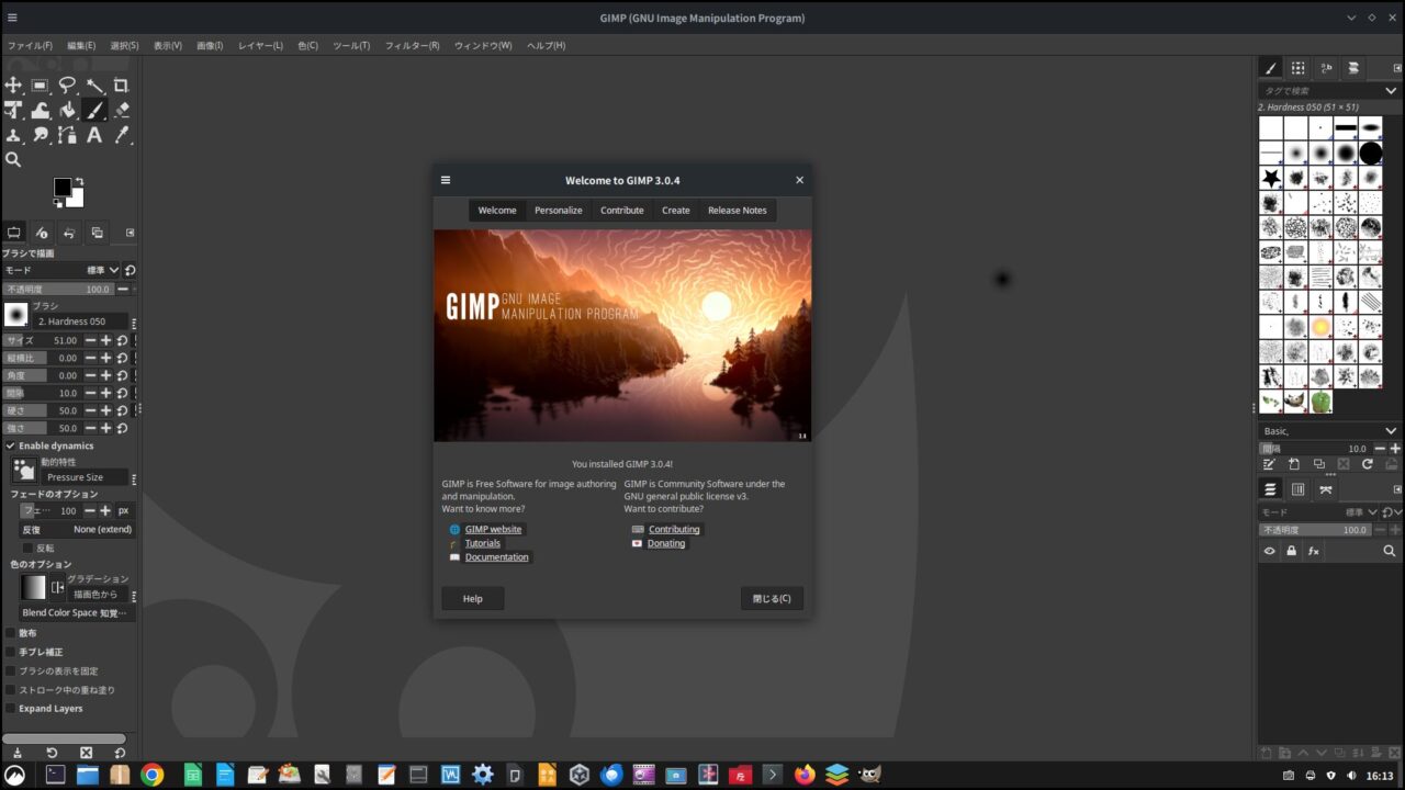 なお、サイト管理者(筆者)が気づいた大きな変更点は、gimpは最新版の3.0.2をインストールできます。ただし、Edit-Preference-Interfaceで日本語を選択し、再起動しても。メニューなどが日本語化出来ません。少し、調べてみます。