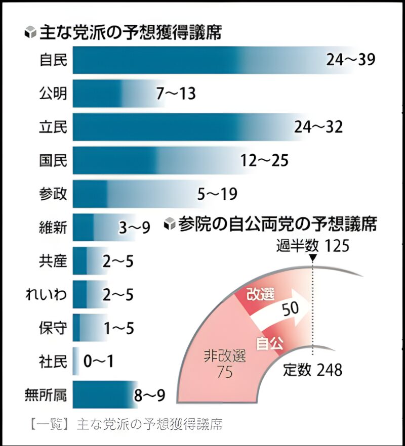 参院選は自公連立与党の過半数割れは必至の情勢、野党連立政権か政策ごとの部分連立政権誕生か