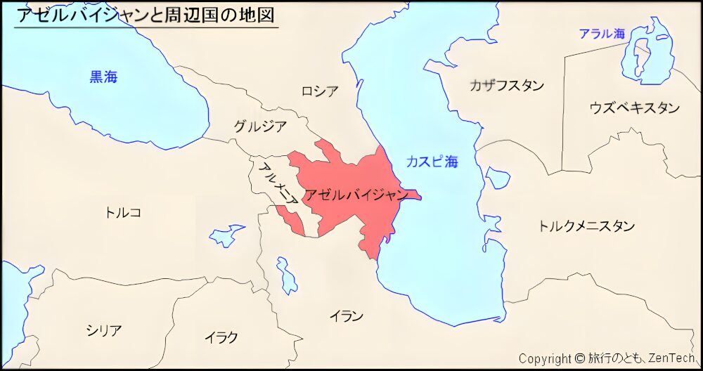 次の地図は、「旅行のとも ZenTech」(https://www.travel-zentech.jp/world/map/Azerbaijan/Map_of_Azerbaijan_and_neighboring_countries.htm)によるもの。アゼルバイジャンの首都はバクーだが、その近郊にバクー油田(https://x.gd/xXWA4)という世界でも有数の油田があり、アゼルバイジャンを傘下に置いているイスラエルは、パイプラインでトルコを経てイスラエルに原油を供給している。