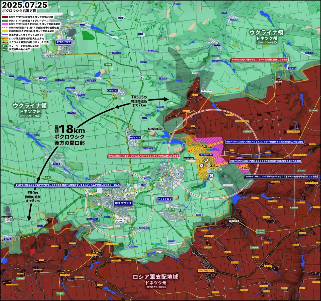 こちらの最新投稿記事によると、ロシア軍のポクロウシク市内への侵攻は一時的なものではなく、トランプ大統領が7月14日、「ロシアが50日以内に停戦に応じなければ、ロシアおよびその貿易国に100%の追加関税を課す」と発表したことから、プーチン大統領率いるロシア軍は50日の間にウクライナに猛攻をかけられることになったと予想されるが、その最大の攻撃目標はウクライナ東部最大の要衝であるポクロウシクの陥落ということになるだろう。航空万能論の軍事ブログ記事からすると、今後、ロシア軍はまず精鋭の特殊部隊を潜入させ、本陣の市内制圧部隊の準備をしながら、全体としてポクロウシク市内の制圧地域の拡大に最大限の力を注ぐというのが基本的な戦略と見て良い。