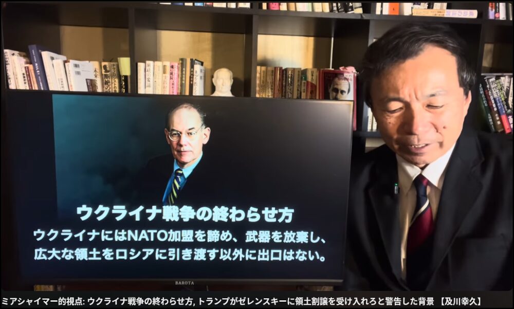 ミアシャイマー教授の予測には、プーチン大統領の「紛争の根本原因の除去」という考え方に近いものがいる。そして、2025年の現在、ウクライナ戦争は次のような終結の道があると主張しているという。なお、同教授の今後の世界情勢の有るべき姿についてもキャプチャ図を表示しておく。