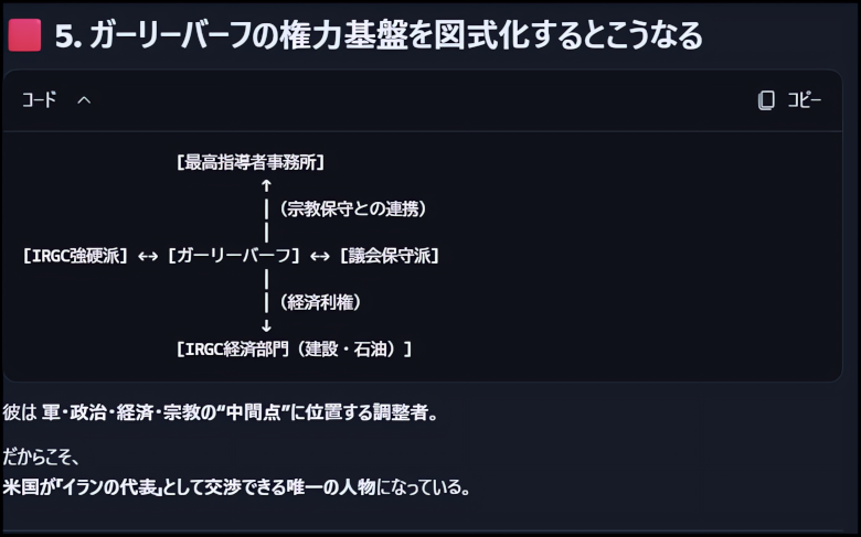 ここでは、彼の「権力基盤」を構造的に、そしてあなたの文明モデルに沿って整理する。🟦 1. 軍事基盤:IRGC(革命防衛隊)出身の“元エリート指揮官”