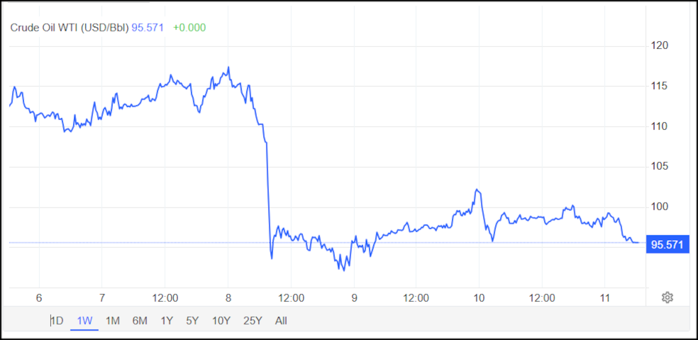 ◆ 2. 原油価格(WTI)が95ドル台に軟化しているのは決定的なシグナル