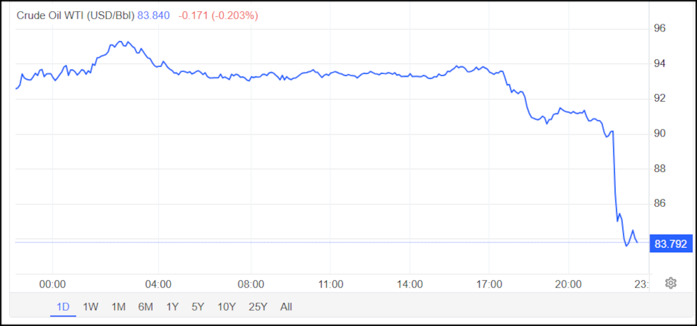 WTIは83ドル台 → 82ドル台へ急落。